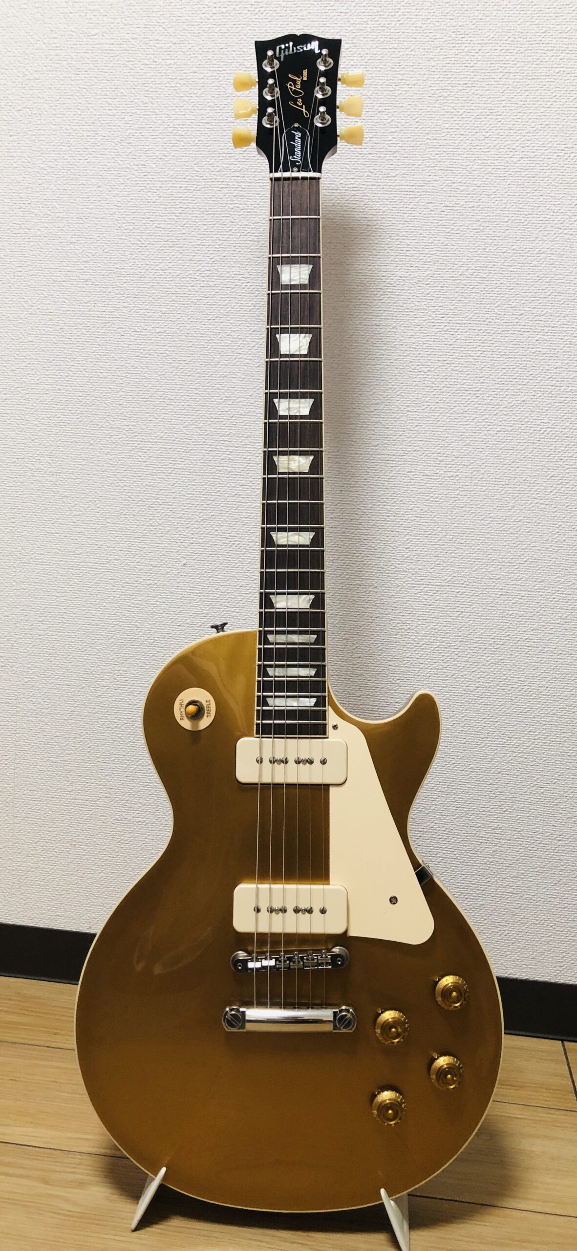 (過去機材) Gibson Les Paul Standard 50s Gold Top (P-90) ギターを始めたばかりの頃は音楽雑誌に載ってた広告のレスポールタイプのゴールドトップ(30点セット)を使っていましたが、それ以来GibsonのGold Topを入手しました。歪みもクリーンもキレイです。